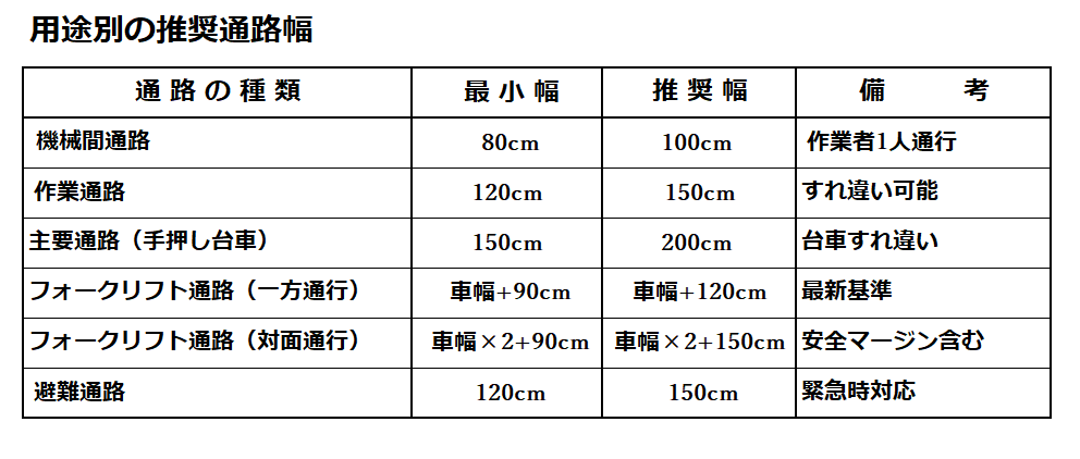 - 工場内のレイアウトを変えたいが通路幅をどのくらいにすれば良いか分からない…
